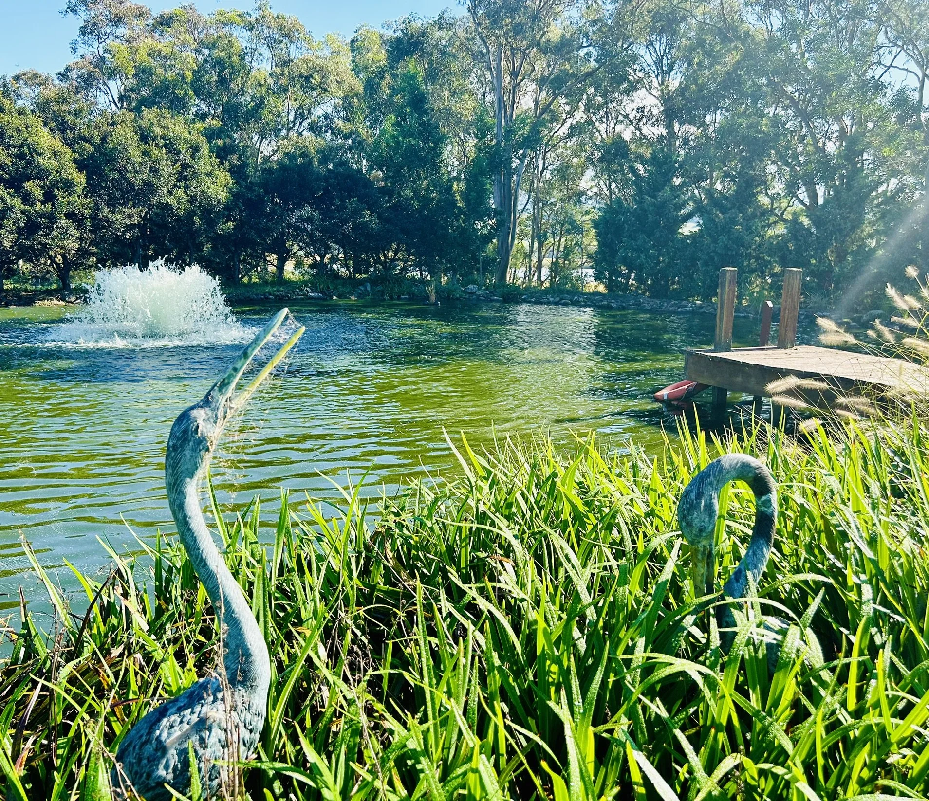 Garden beds flow around the sandstone house and cottage in this rural property, only a stone’s throw from Seven Mile Beach. Follow the paths through hidden gardens spilling down the slope to the dam where seating allows enjoyment of reflections and of the escarpment views beyond. Blending the serenity of gardens of the east with the generous plantings of a traditional English cottage garden, the owners say this is an ever-evolving living canvas. Hedging, a meditation garden, olive and citrus groves, rose beds, garden art and sandstone walls creating “rooms”, all add to the garden’s interest. Take a moment to contemplate nature from the shelter of the cabana. A frangipani garden leads visitors down the tree dotted slope to the dam where seats are placed to take advantage of the “borrowed landscape” of the Saddleback Mountains in the distance.